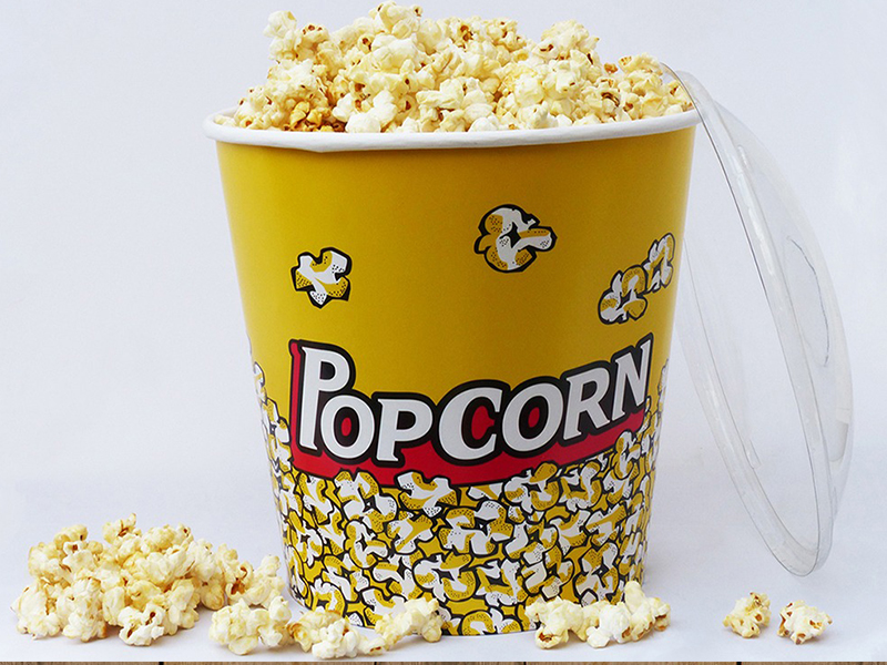 Típico balde de los cines. Aptos para contener alimentos, como pochoclos o pollo frito Tapas plásticas o de cartulina